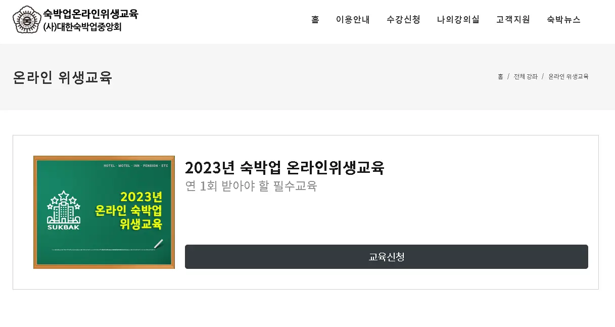 대한숙박업중앙회 숙박업온라인위생교육입니다.