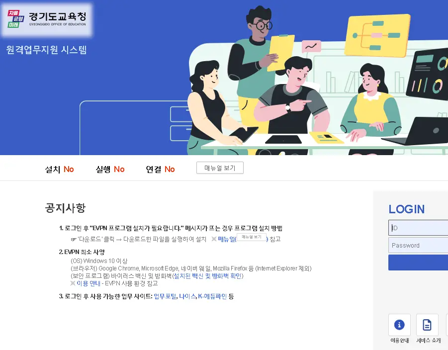 경기도교육청 EVPN 나이스 원격업무지원 서비스 이용방법