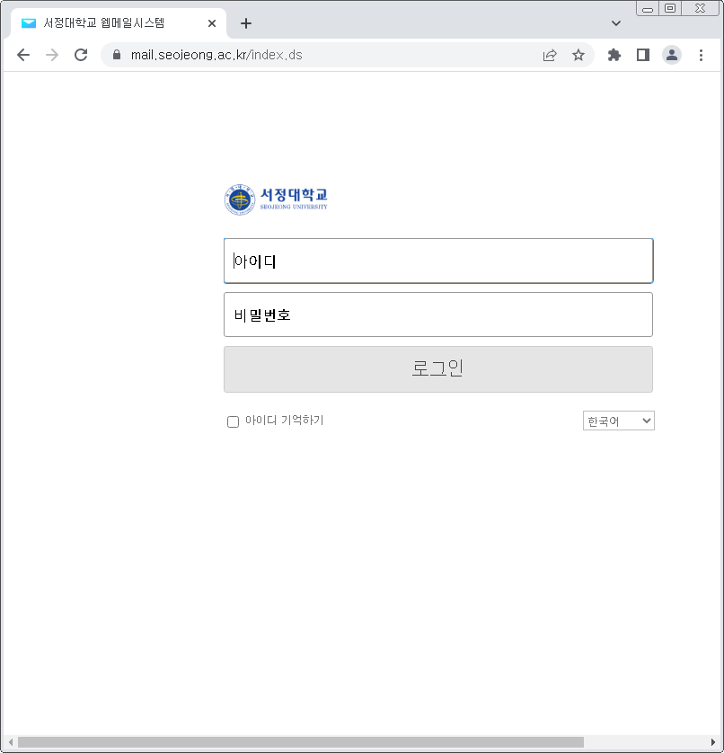 해당 시스템은 서정대학교의 공식 메일 시스템으로 내부 학생과 교직원 외에는 이용이 되지 않습니다.