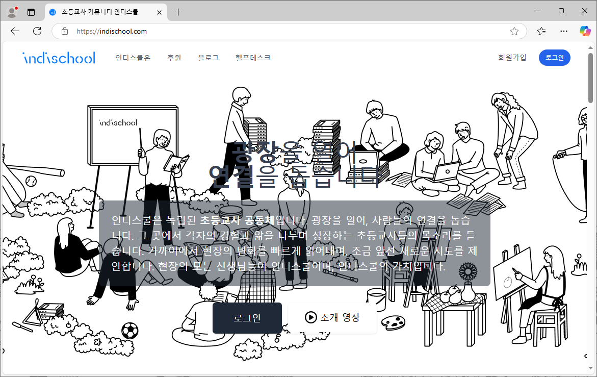 인디스쿨은 14만 명이 넘는 초등 교사들이 함께 만들어가는 국내 최대 규모의 교사 커뮤니티입니다. 2000년부터 시작된 인디스쿨은 선생님들이 자발적으로 모여 경험과 지식을 나누고, 서로 지지하며 성장하는 따뜻한 공간입니다.