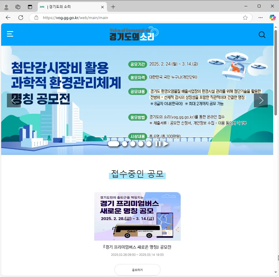 경기도는 넓은 면적만큼이나 다양한 매력을 지닌 곳인데요, '경기도의 소리'는 경기도민들의 목소리를 담아 소통하고, 함께 만들어가는 공간입니다. 이곳에서는 정책 제안부터 생활 불편 사항 신고, 다양한 도정 뉴스까지, 경기도의 모든 것을 만나볼 수 있습니다.