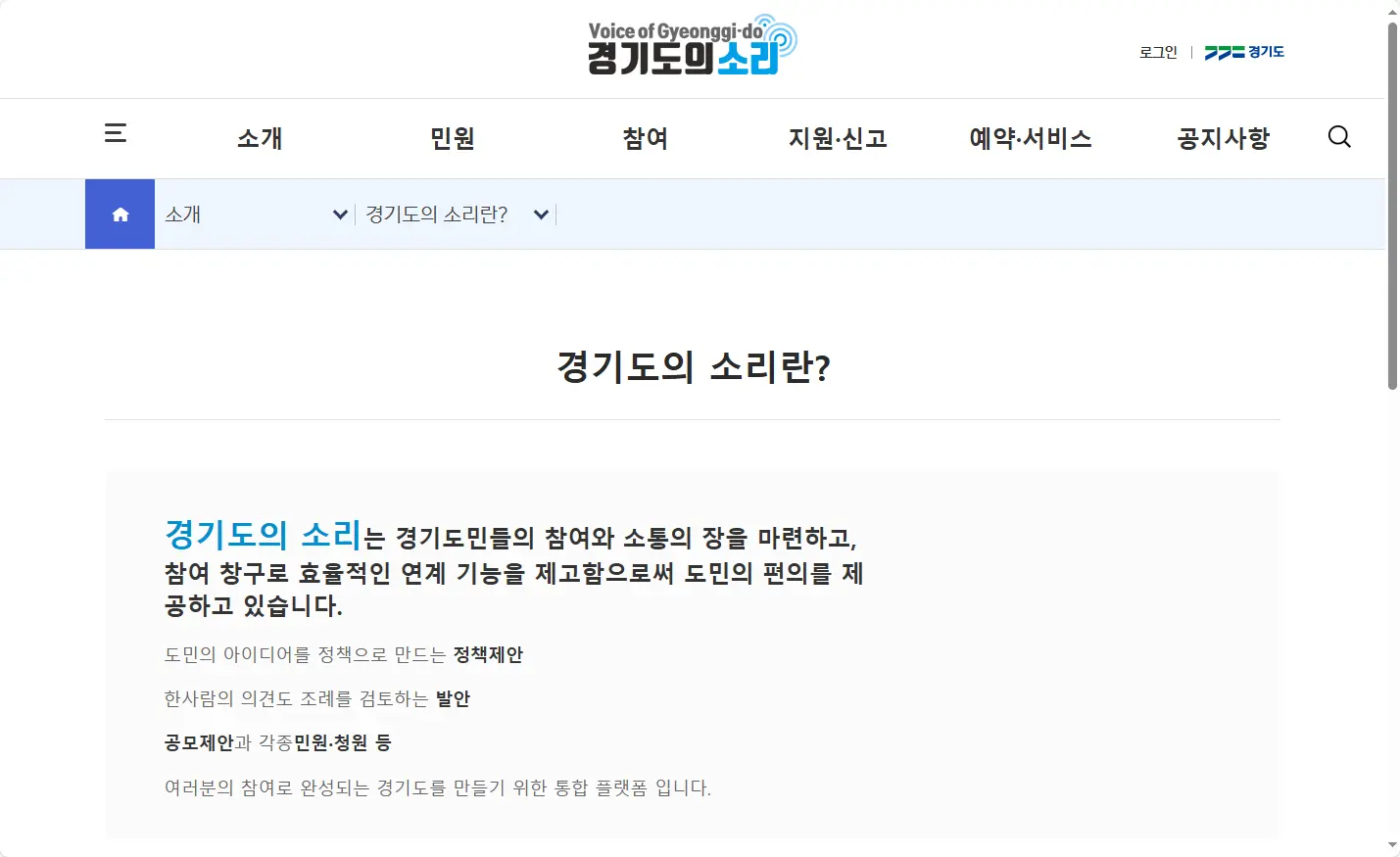 - 도민과의 소통 창구: 경기도민이라면 누구나 자유롭게 의견을 개진하고, 정책에 참여할 수 있습니다.