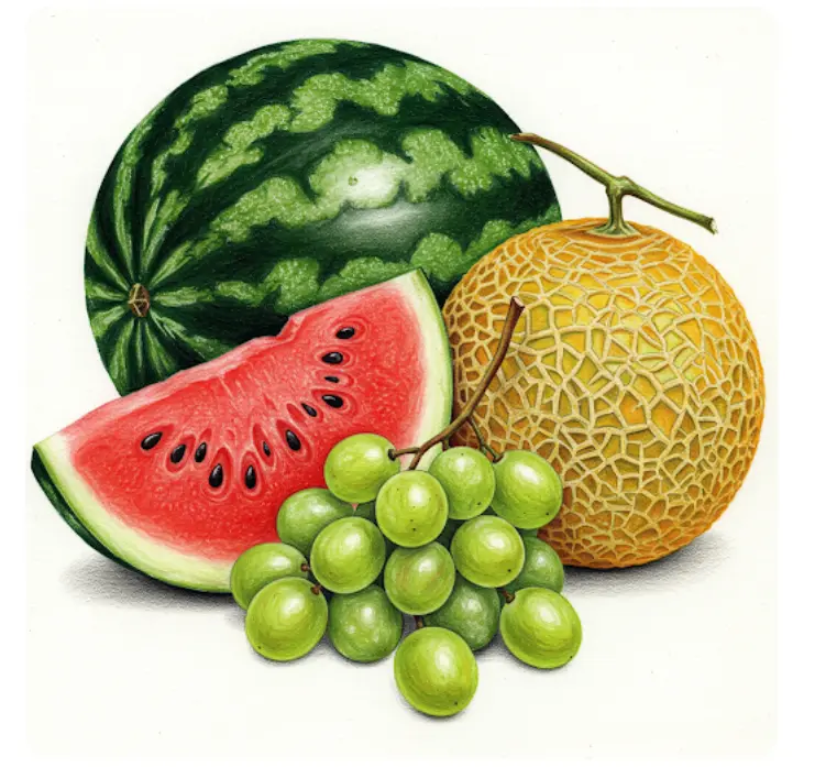 5. 자연의 활력, 신선한 과일 (수박, 참외, 포도 등)
