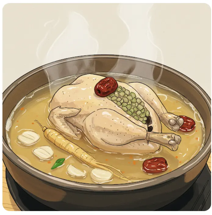예로부터 우리 조상들은 더위를 이기는 음식으로 삼계탕을 즐겨 먹었습니다. 닭고기는 단백질이 풍부하여 기력을 회복하는 데 도움을 주고, 인삼, 대추, 황기 등의 약재는 원기 회복과 면역력 강화에 효과적입니다. 뜨거운 음식이지만, 땀을 쭉 빼고 나면 오히려 몸이 개운해지는 느낌을 받을 수 있습니다.