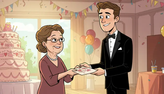 - "OO아! 결혼 축하한다! 드디어 너도 '진짜 어른'이 되는구나! 행복하게 사는 모습 보여줘!"
