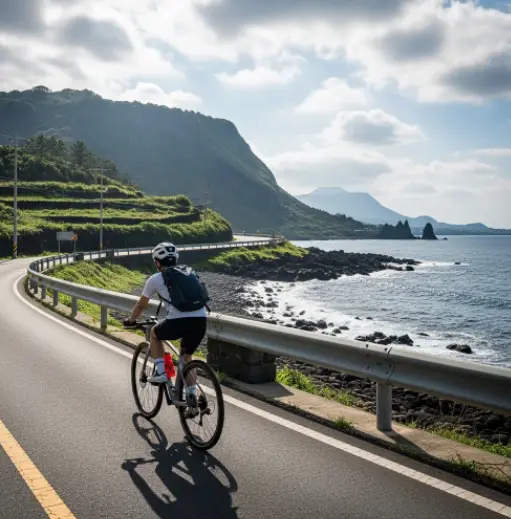 하지만 제주도는 생각보다 오르막과 내리막이 많아 체력 소모가 클 수 있습니다. 따라서 평소 자전거를 즐겨 타는 사람이 아니라면 무리한 계획보다는 하루 주행 거리를 짧게 잡고 여유롭게 여행하는 것을 추천합니다.