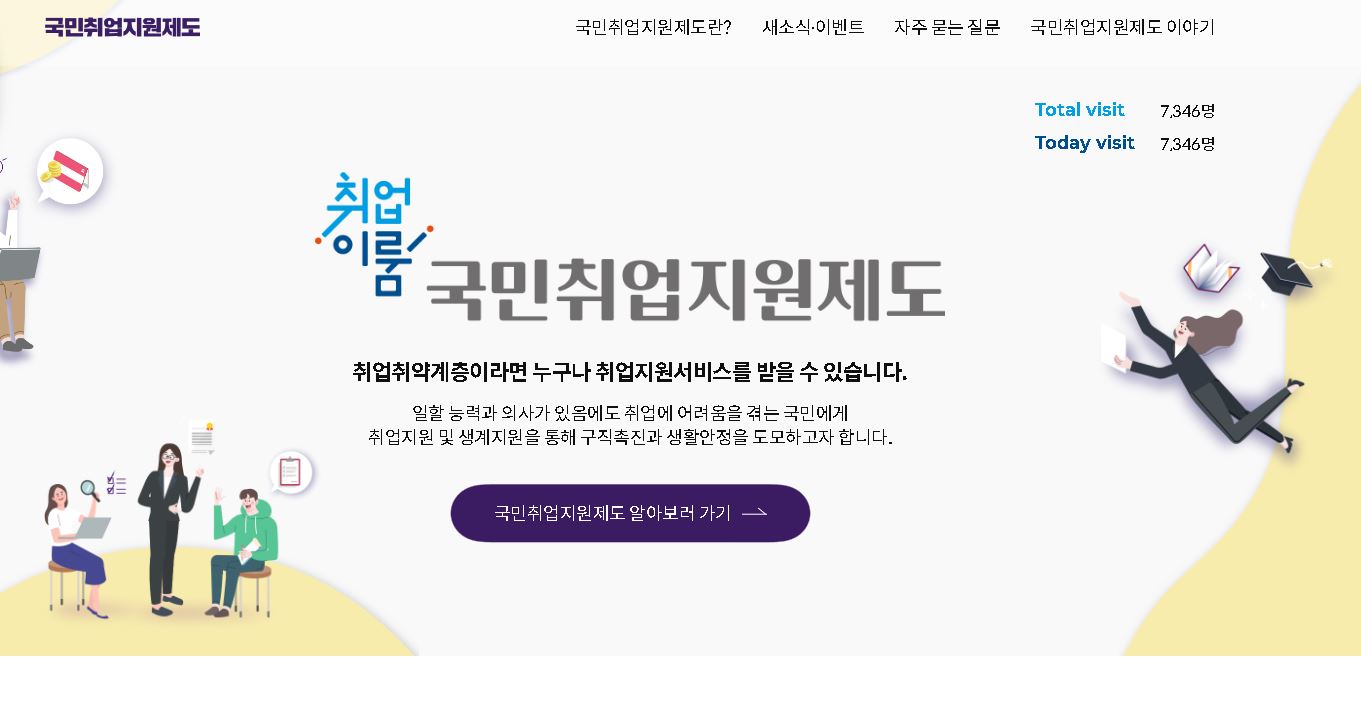 국민취업지원제도에 대해 알아볼 수 있는 공식 홈페이지