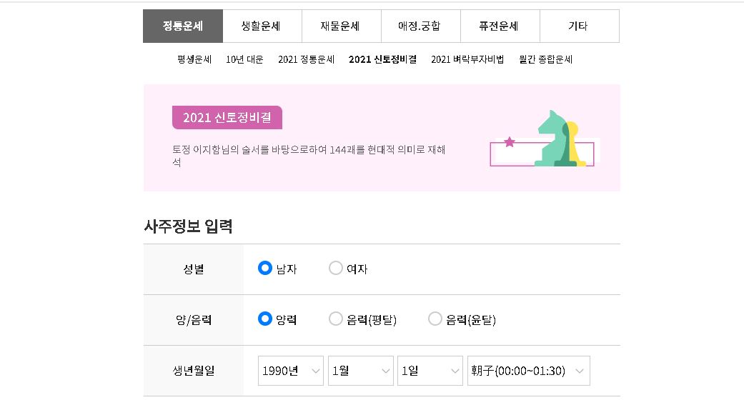 농협 인터넷뱅킹 무료 토정비결 (nh.sinbiun.co.kr/)
