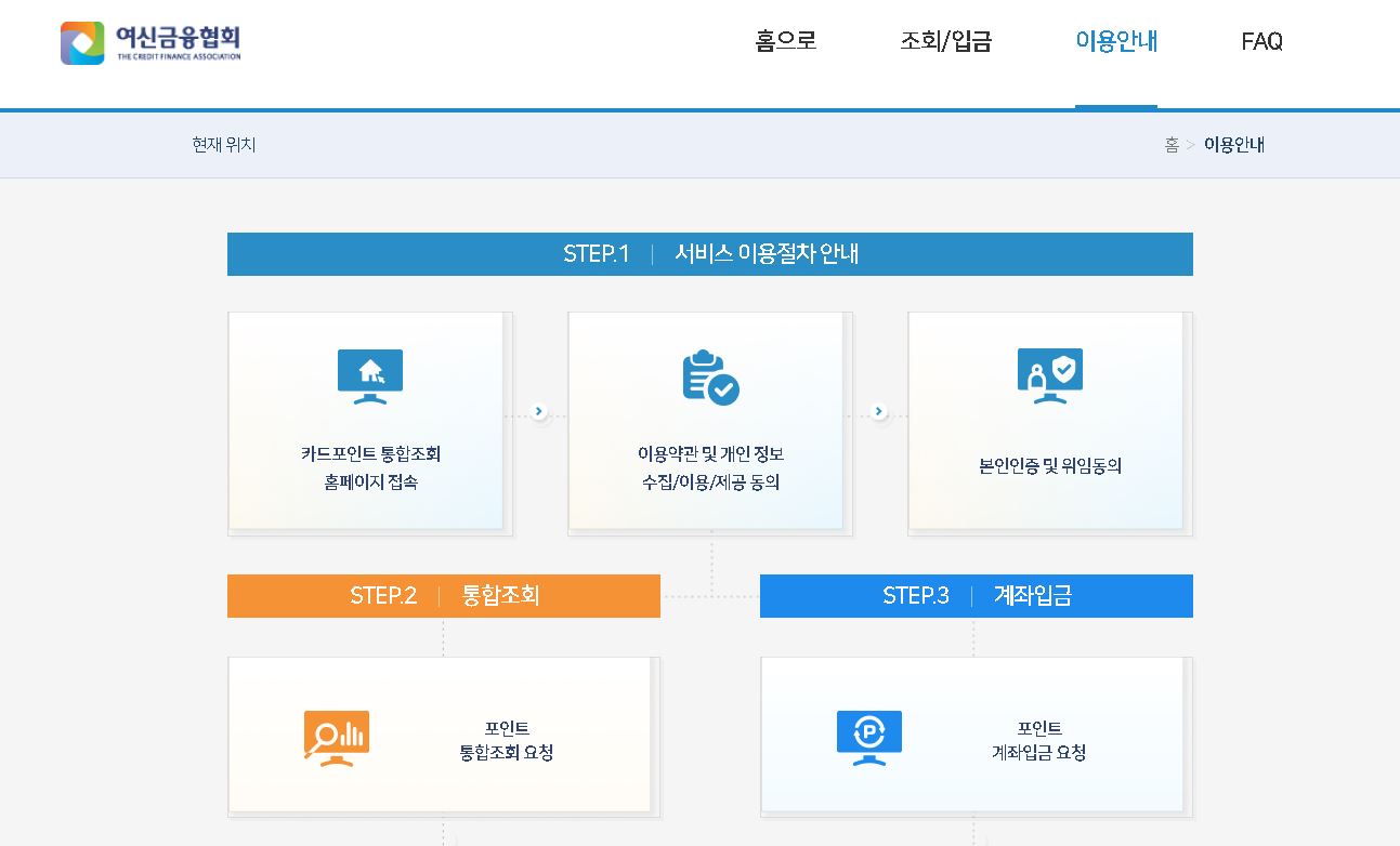 여신금융협회 카드포인트 통합조회 계좌입금 바로가기