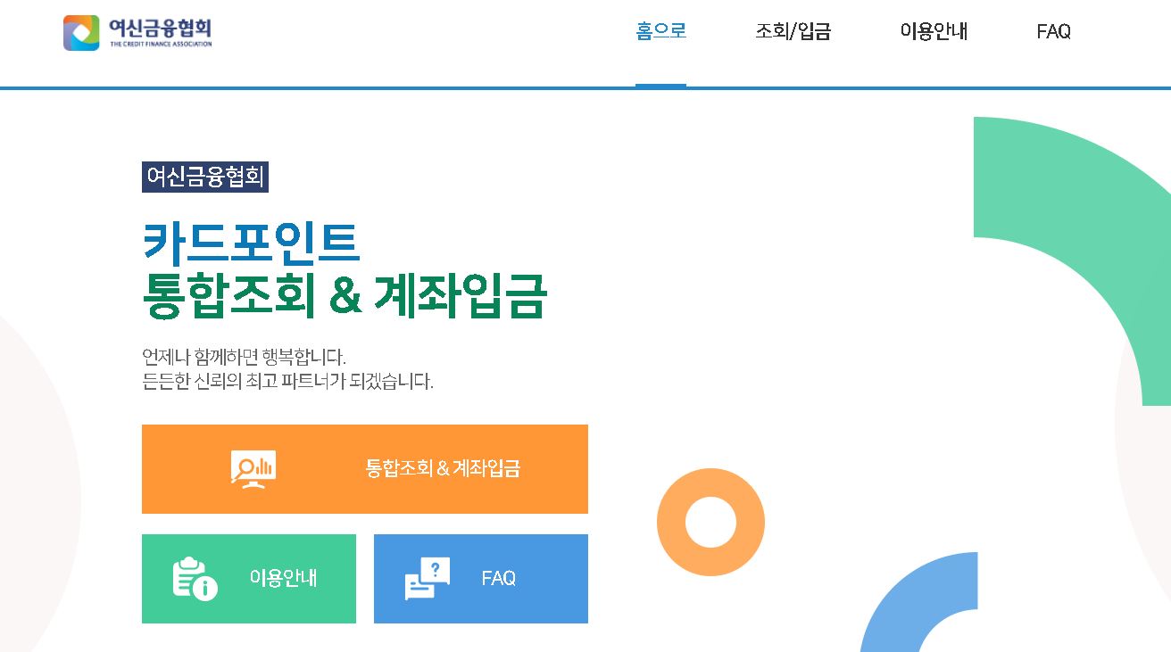 여신금융협회 카드포인트 통합조회 계좌입금 (www.cardpoint.or.kr/)