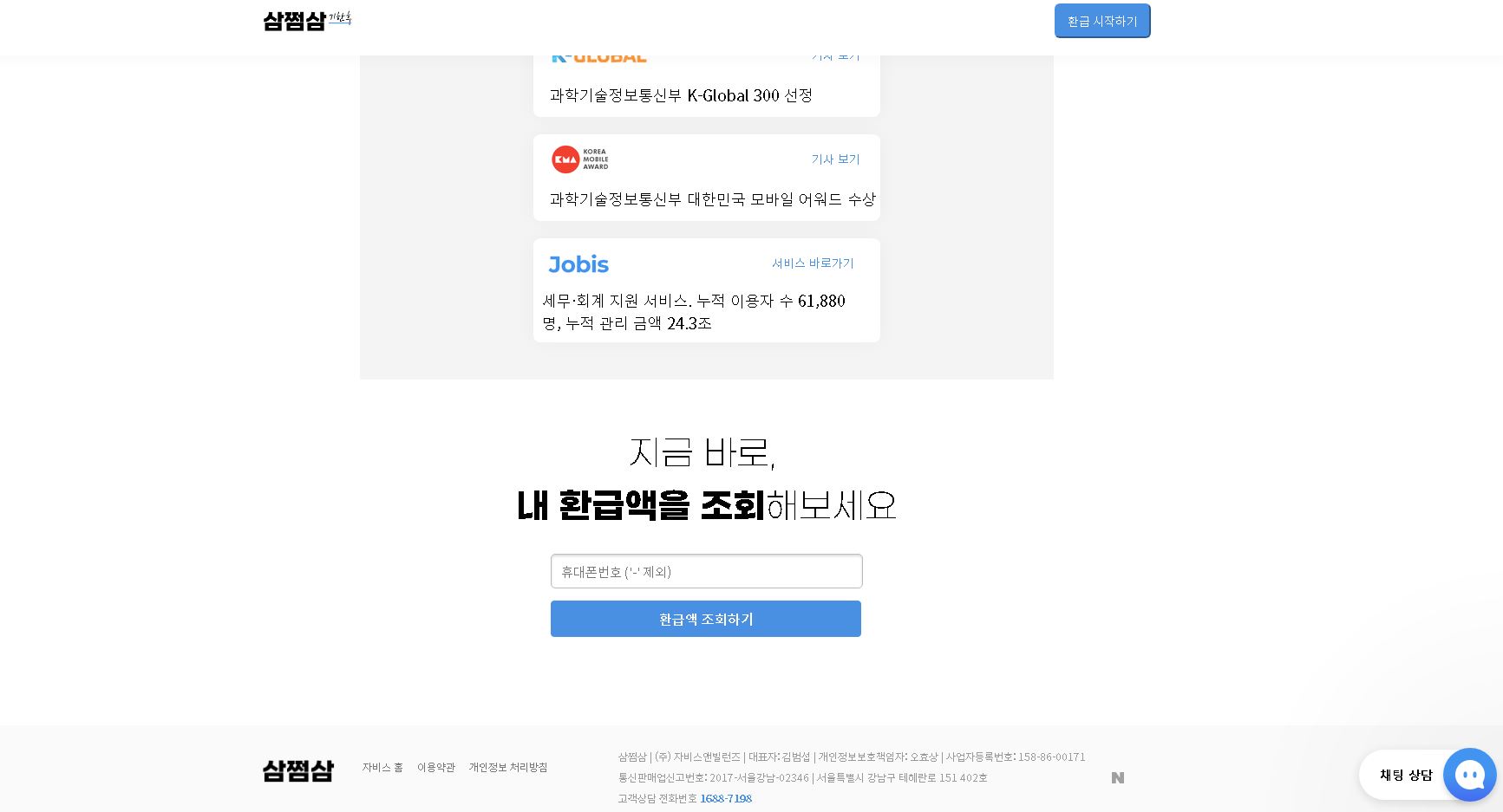 잘 몰라서 떼인 돈 3.3%, 삼쩜삼에서 무료로 확인하고 간편하게 돌려받으세요.