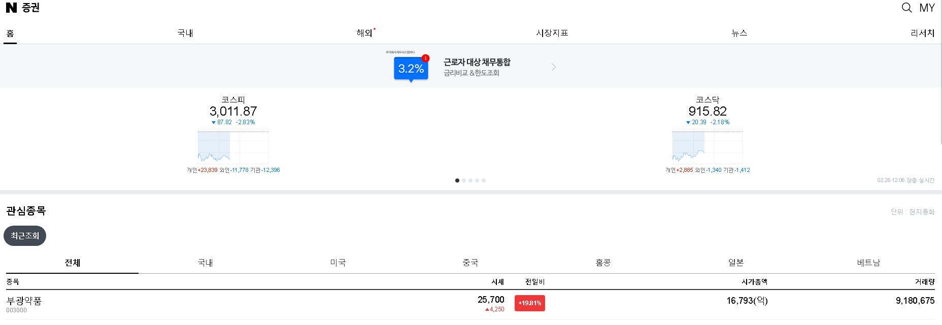 국내 해외 증시 지수, 시장지표, 펀드, 뉴스, 증권사 리서치 등 제공