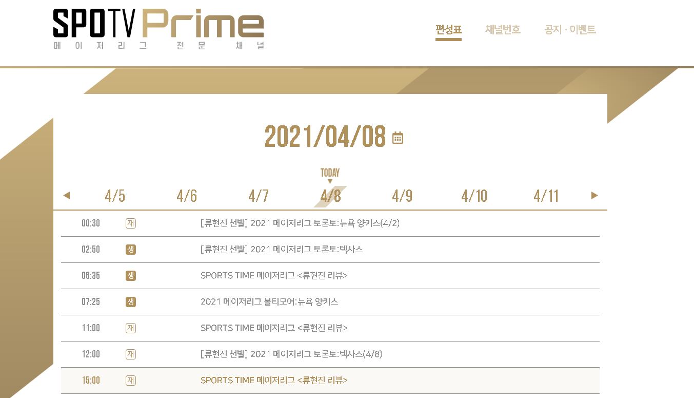 메이저리그 전문 채널로써 개설이 되어서 편성표를 확인하시면 경기 시간과 일정에 대해서 구체적으로 확인이 가능합니다. 한국인 선수들의 경기는 대부분 지원을 해주고 있는데요.
