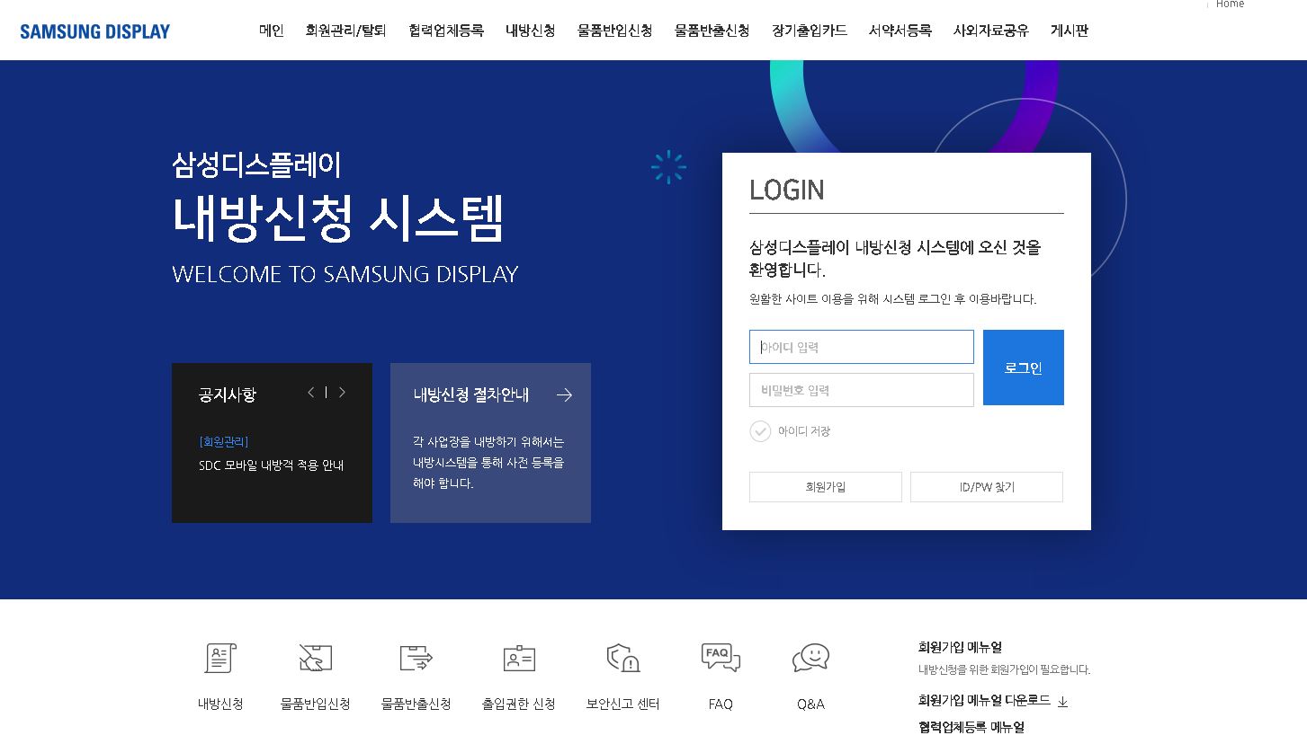 삼성디스플레이 내방신청 시스템 (guest.samsungdisplay.com)