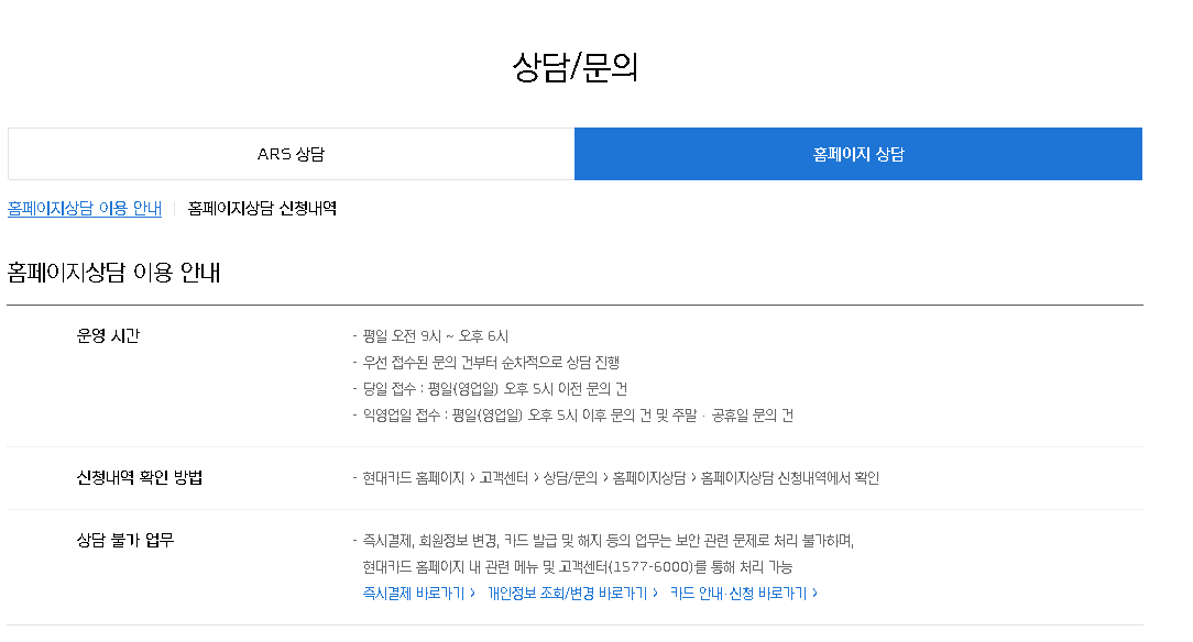 직접적으로 현대카드 고객센터의 전화번호를 통하여 연락을 하여서 통화를 하면서 문제를 해결할 수 있습니다. 전화연결만 된다면 전화로 하는게 가장 좋긴 할 것 같네요.