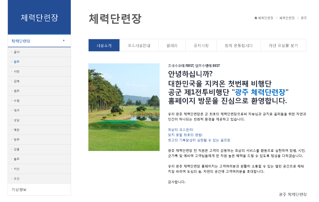 광주 공군체력단련장 홈페이지 가기
