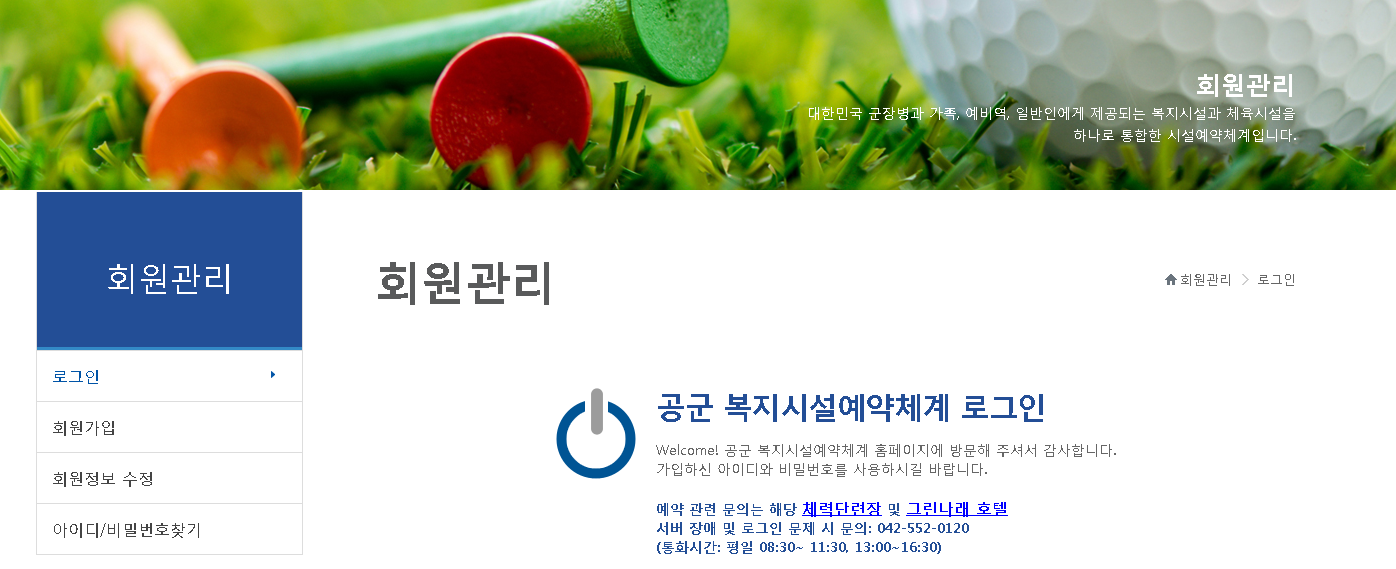 예약과 같은 경우는 공군 복지시설예약체계에서 로그인을 하시면 예약을 할 수 있습니다. 그럼 광주 공군체력단련장 이용에 도움받으시길 바랍니다.