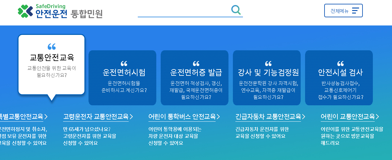 특히 면허시험 및 교통안전을 위한 교육과정은 많은 분들이 이용을 하시는 서비스 임으로 온라인으로 잘 확인 후에 이용해보시기 바랍니다.