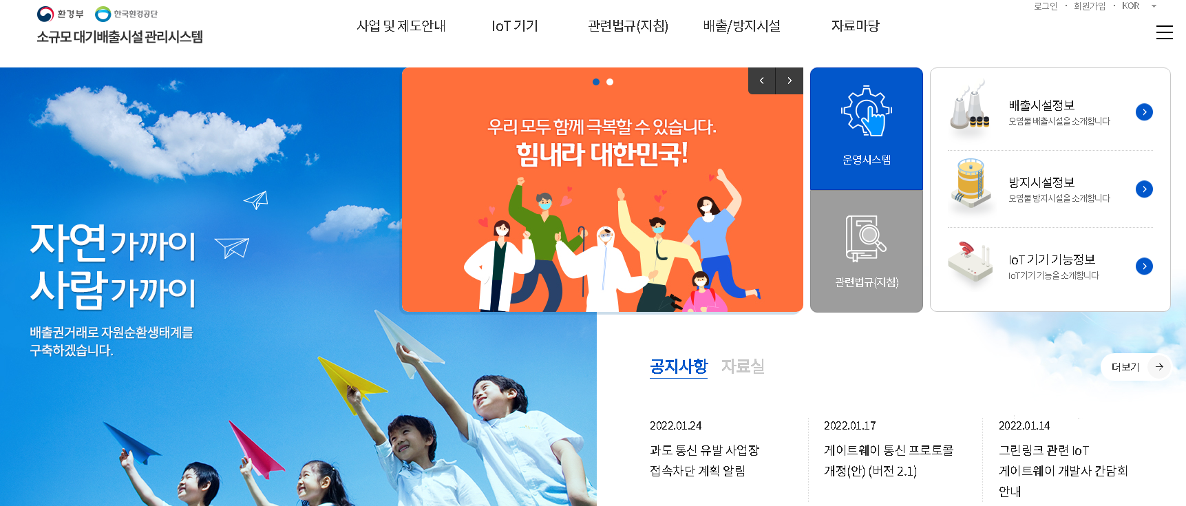 환경부, 한국환경공단이 함께하는 소규모 대기배출시설 관리시스템에서는 대기오염물질 배출관리에 대한 모니터링 운영 관리 방안을 마련하고 있습니다.