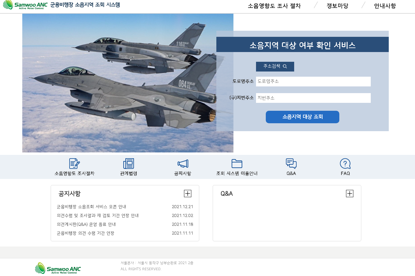 군용비행장 소음조회 시스템 (kmnoise.samwooanc.com)
