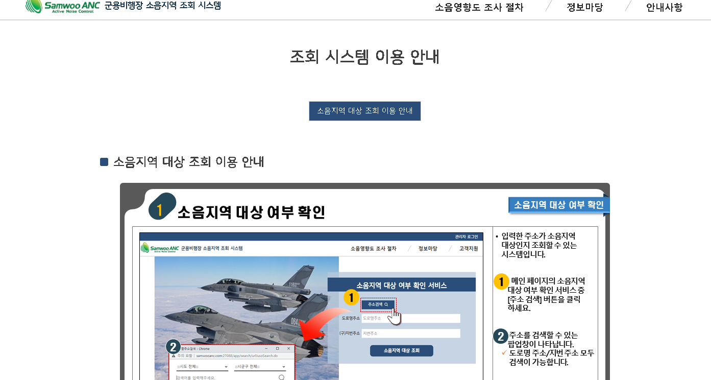 군용비행장 소음지역 조회 홈페이지