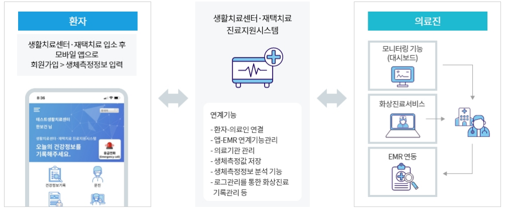 코로나 바이러스가 확산되어지고 있는 가운데 생활치료센터나 재택치료 환자들을 위해 의료진에게 실시간 생체신호를 전송하는 시스템이 마련되어져 있습니다. 이런 생활치료센터 재택치료 진료지원 시스템은 환자와 의료진 간의 대면접촉을 최조화하여 비면면으로 환자의 건강정보를 모니터링하고 진료를 지원합니다.