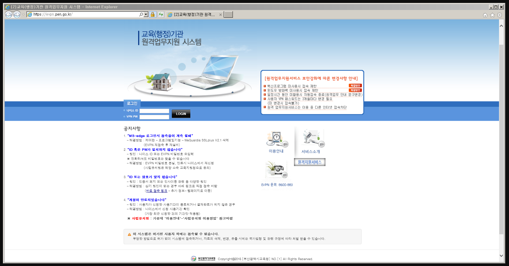 부산교육청 evpn 원격업무지원서비스 (https://evpn.pen.go.kr)