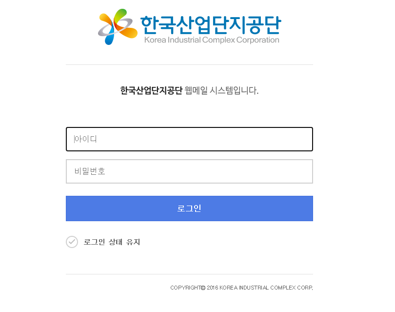 임직원분들이 이용하시는 메일서비스로써 가입된 아이디와 비밀번호를 통하여 로그인을 하시고 이용하시면 한국산업단지공단 웹메일 시스템 이용이 가능합니다.
