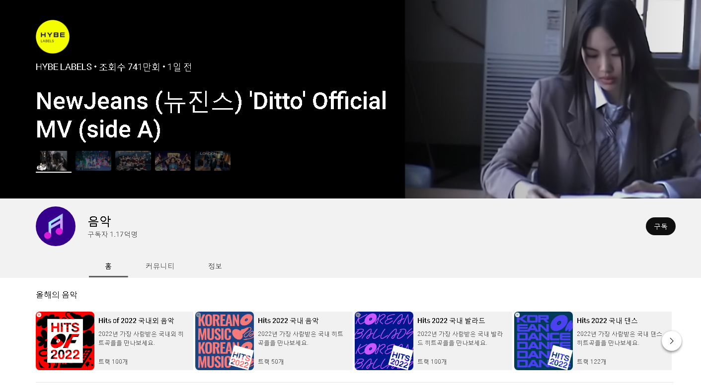 특히 모바일에서 활용이 많이 된다고 하네요. 그러나 이렇게 보다는 그냥 올라와 있는 음악 트랙하고 리스트를 이용하는 분들도 많아요. 이럴 때는 음악 채널을 이용해보시면 편리합니다.