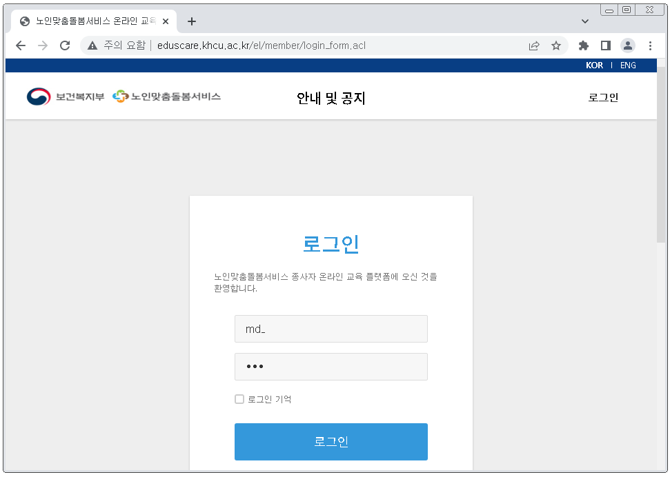 노인맞춤돌봄서비스 온라인 교육 플랫폼 (eduscare.khcu.ac.kr)