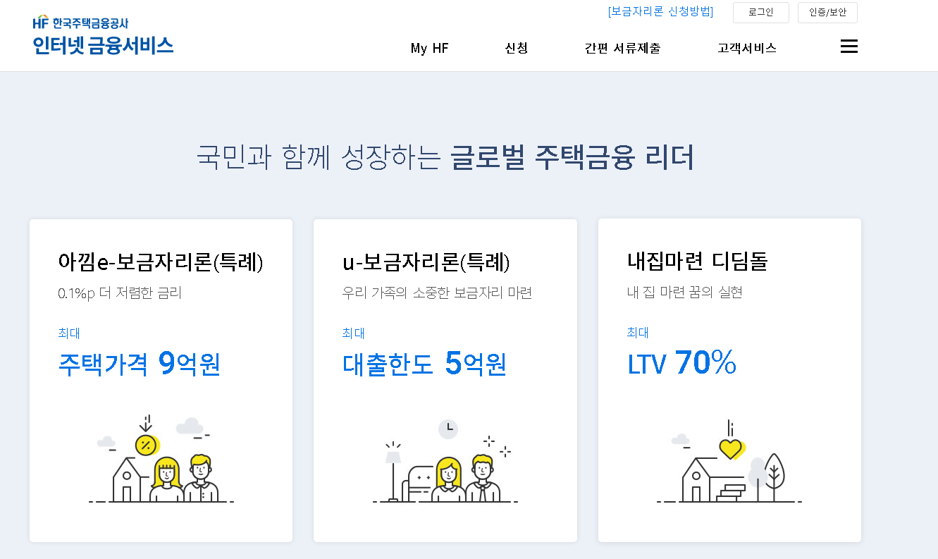 한국주택금융공사 인터넷금융서비스(bank.hf.go.kr)