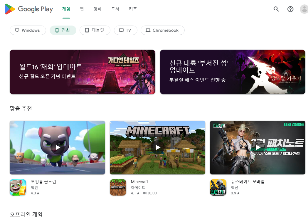 구글플레이 스토어 같은 경우는 안드로이드 운영체제에서 제공되는 서비스로써 모바일 앱을 비롯한 다양한 컨텐츠를 설치하거나 이용할 수 있는 기능을 제공합니다. 모바일 전용 운영체제인 안드로이드이기 때문에 일반적인 PC에서는 play스토어를 사용할 수 없는데요.